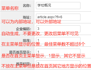 菜单设置参数说明