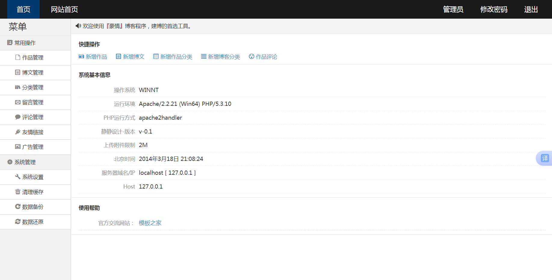 重复了简单豪情博客后台模板