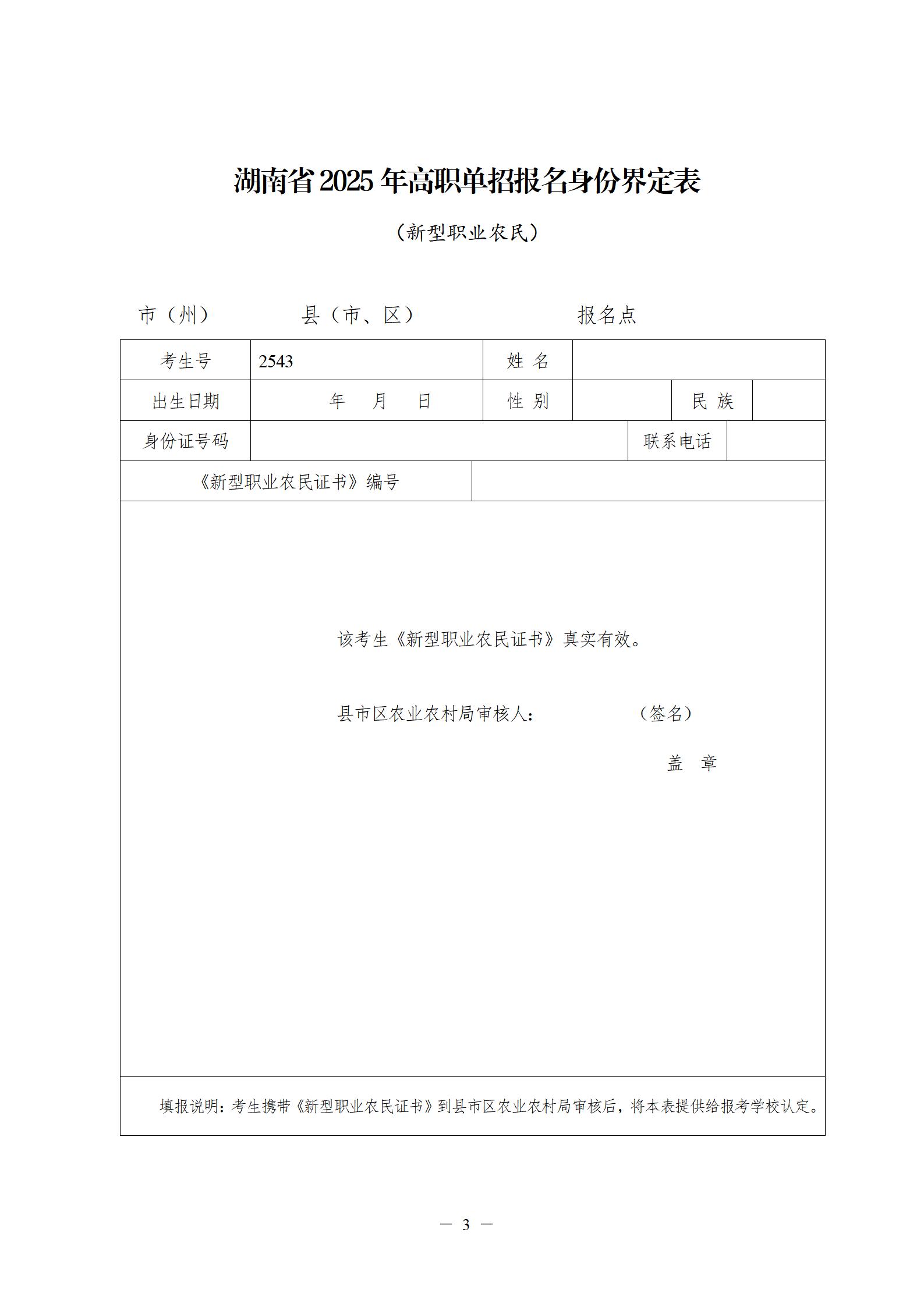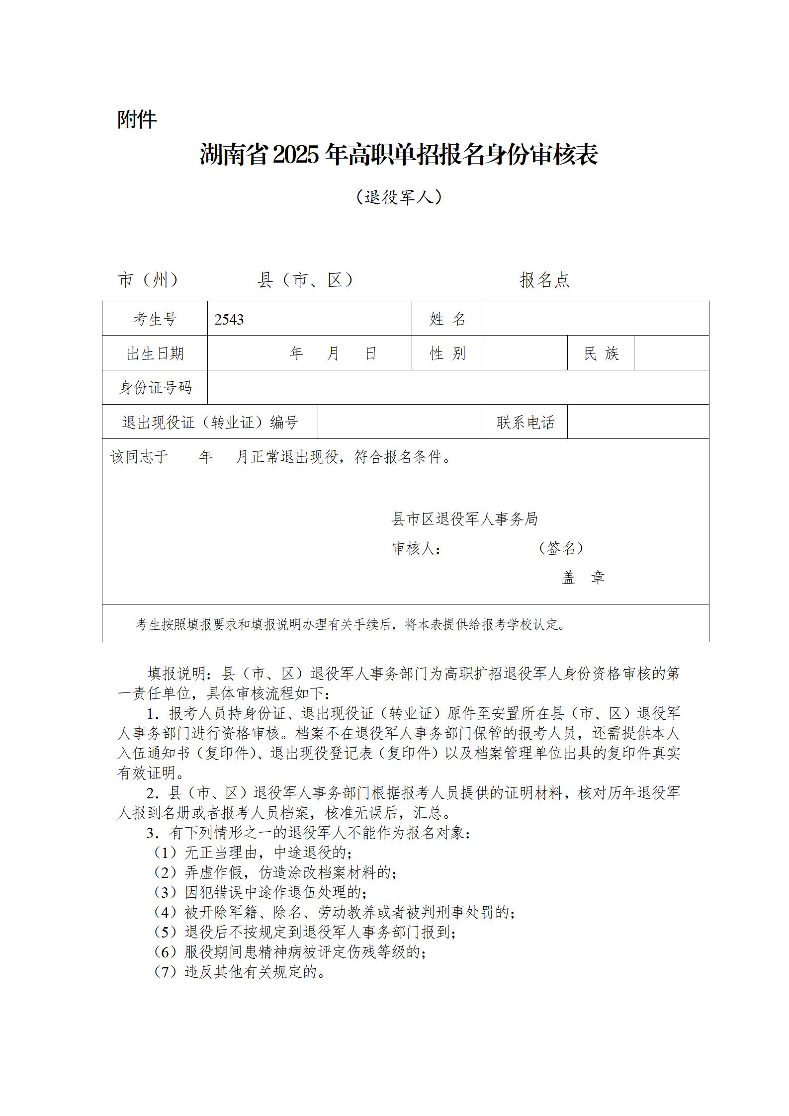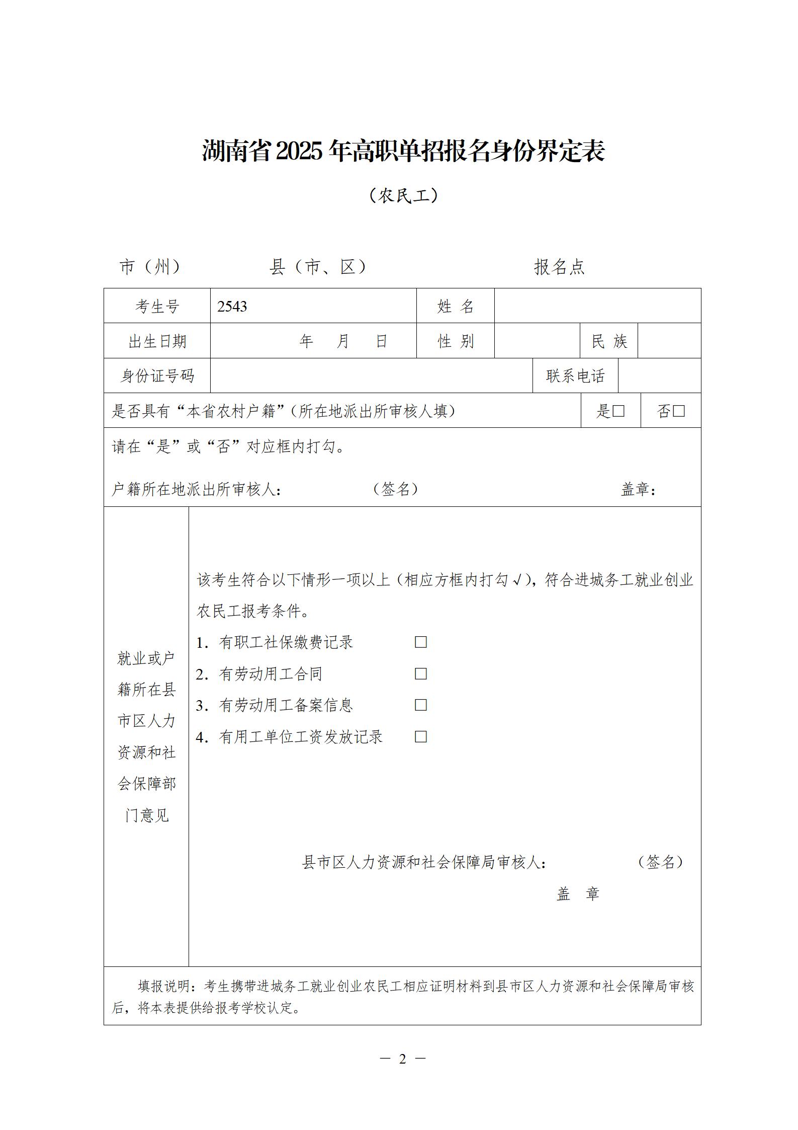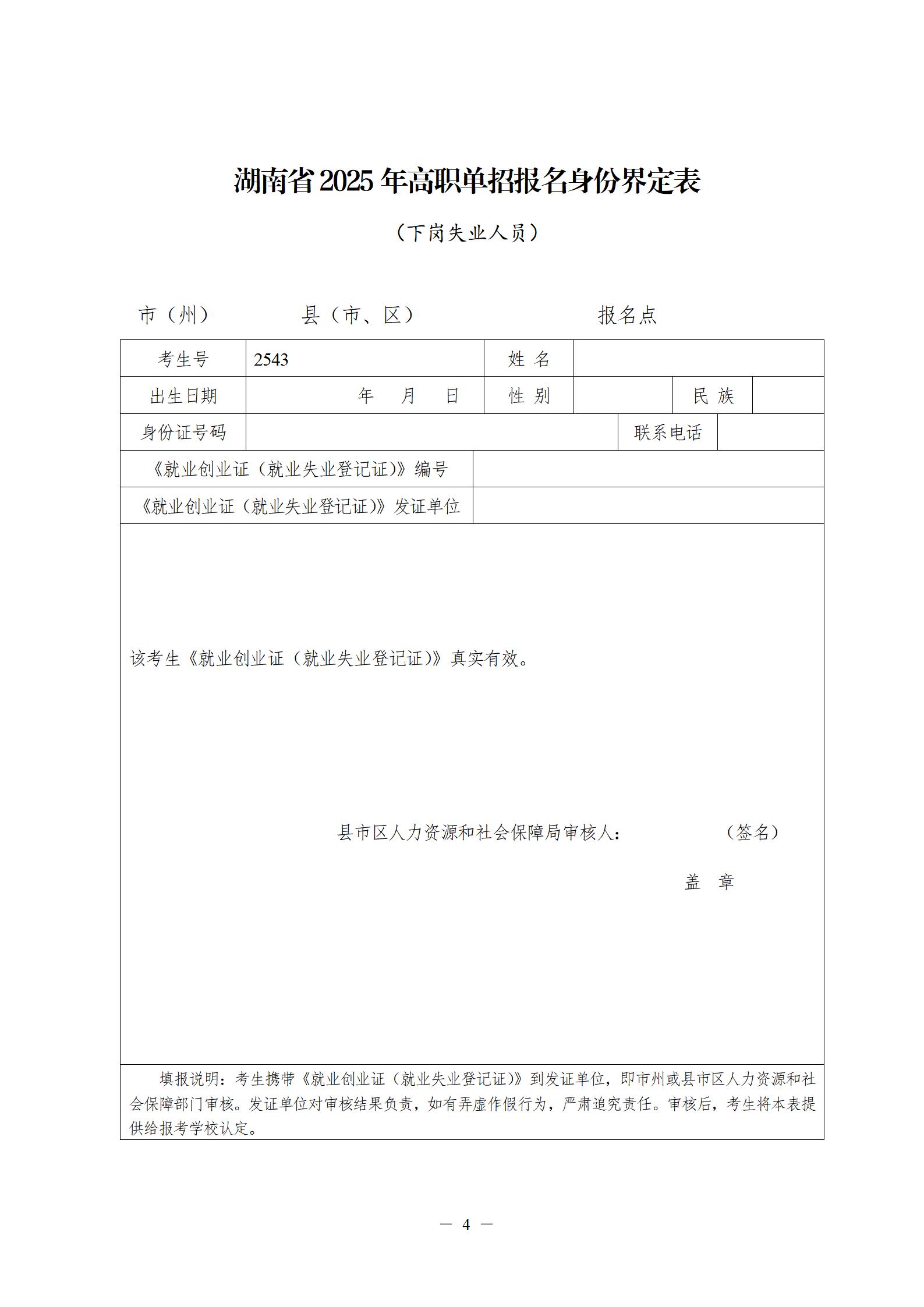 附件:湖南省2025年高职单招报名身份审核(界定)表(点击下载)